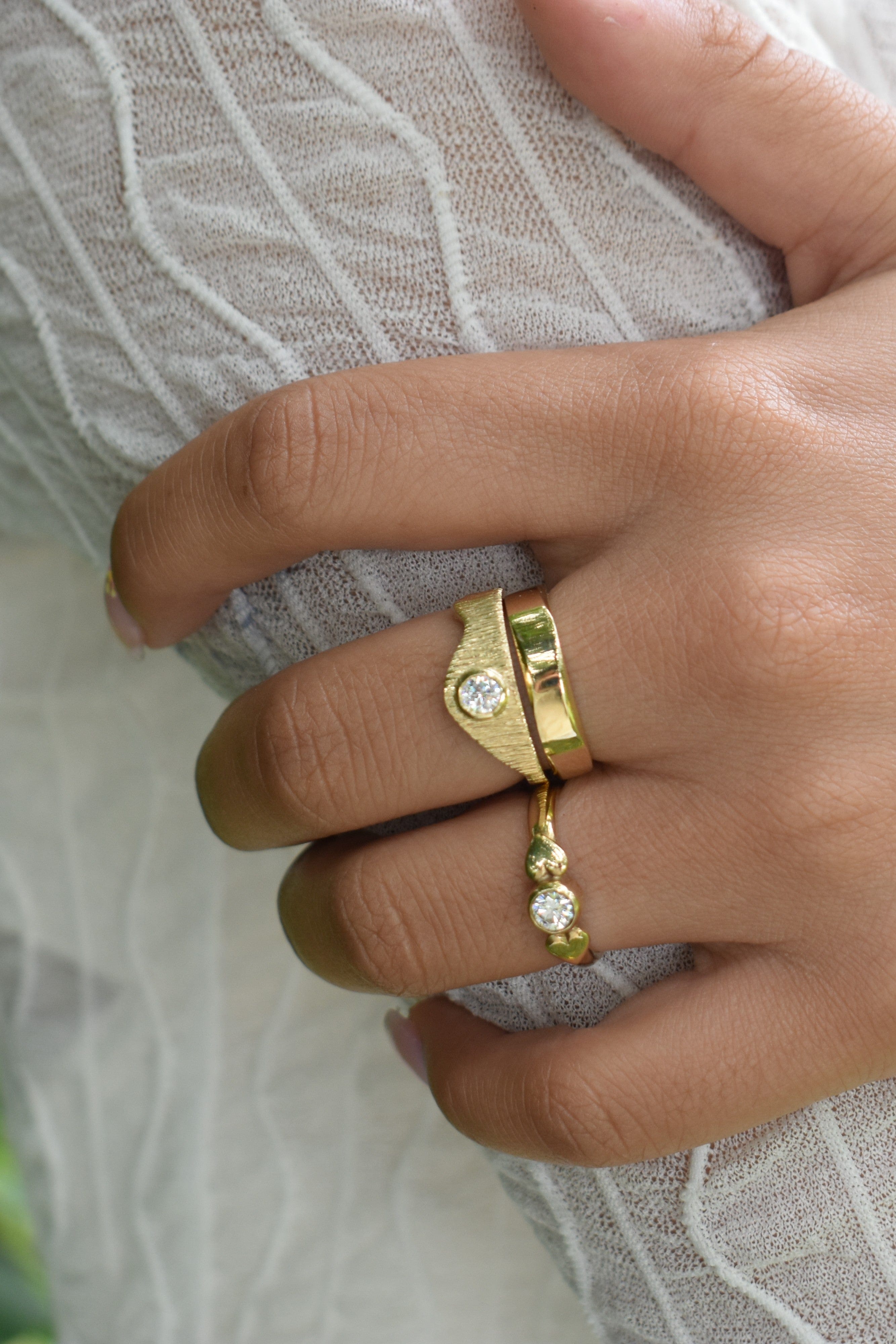 Triple Gemstone Solid Gold Ring