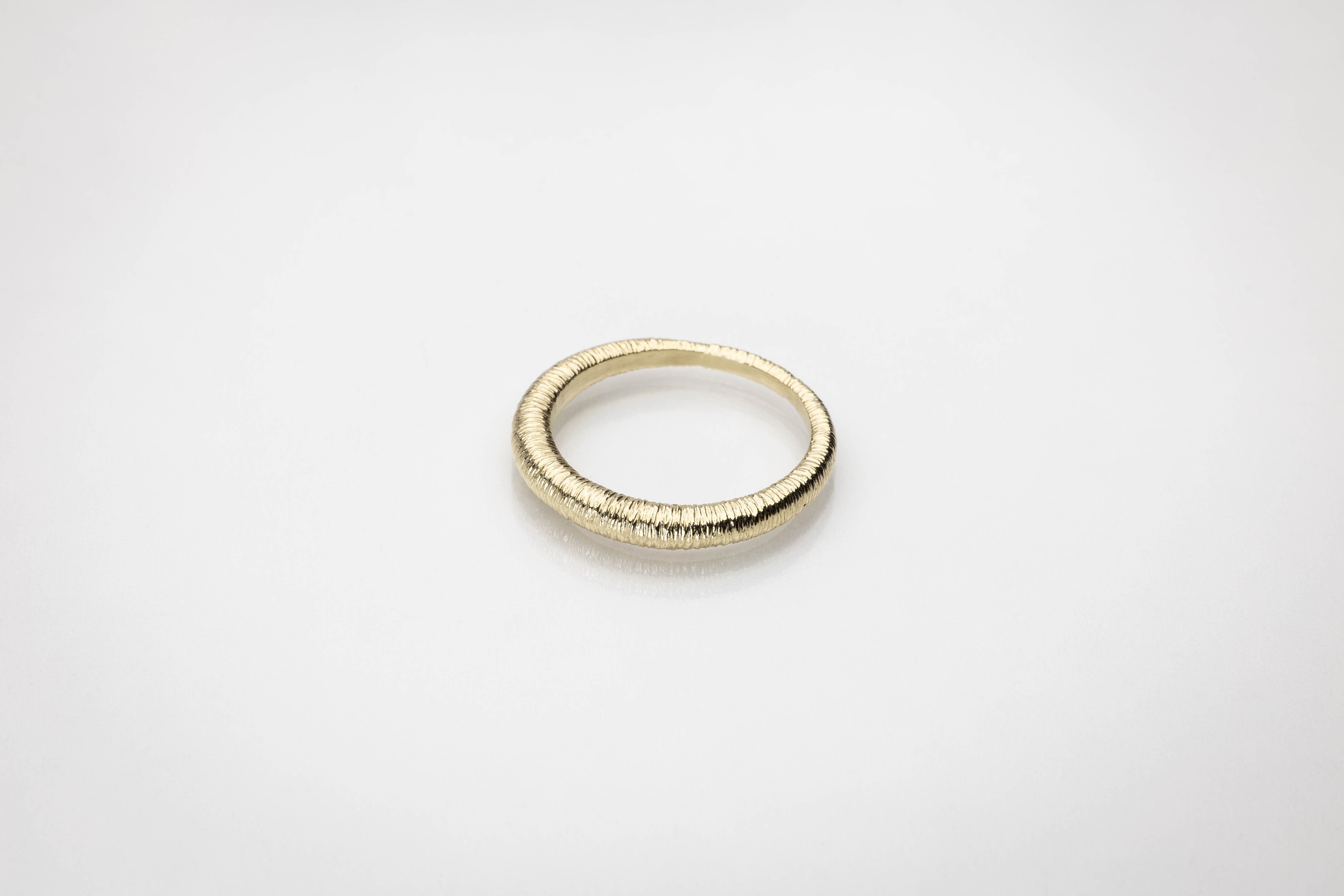 This textured finish ring features subtly sculpted, torc-inspired forms that reflect the signature shapes of the Síoda Collection. Its textured surface interplays with light, offering a refined shimmer and tactile elegance that draws the eye.